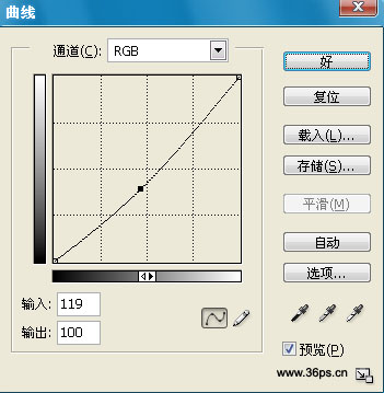 9、树的颜色和天空有点差异,我们用曲线工具稍微调整一下树的颜色。打开曲线工具,调节如下: