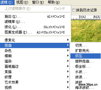 #p# 10、下面将背景(草地)进行美化一下,使用滤镜----扭曲----挤压,大约挤压20-30就可以了,这里选择了29%。