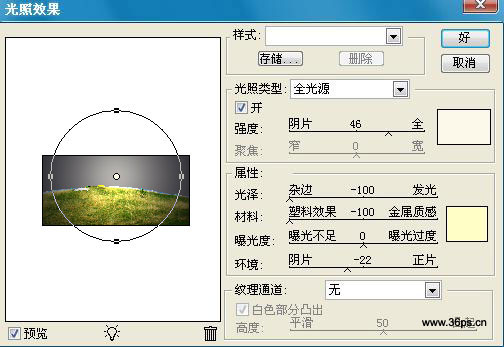12、下面给背景(草地)图层添加光照效果,设置如下: