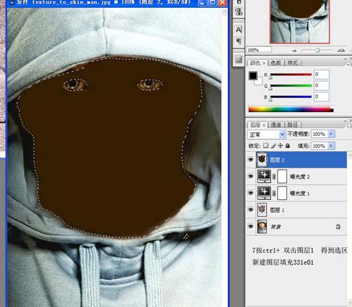 7、按Ctrl点击图层1调出选择,新建一个图层填充颜色:#331e01。