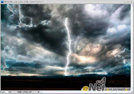 本教程主要介绍闪电效果的制作方法。主要是利用滤镜效果来制作,先把图片颜色压暗,整体渲染一下暴风雨来临的气氛,然后再用滤镜制作出闪电,方法非常实用。