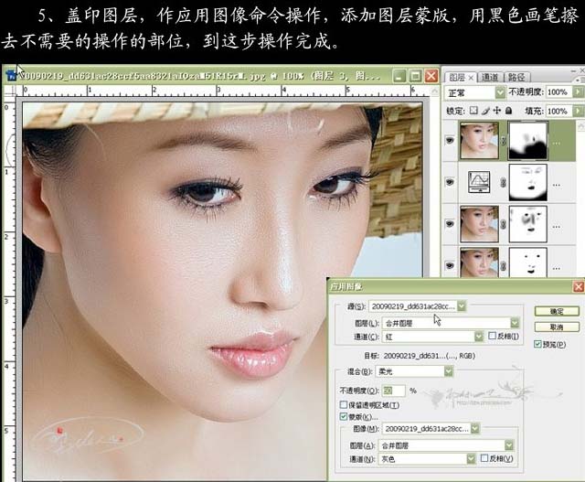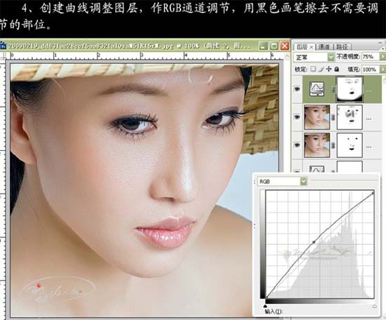 平面设计 > photoshop教程 > 照片处理 > Photoshop 完美的保持皮肤细节磨皮 2009-02-23 20:03:44 脚本之家 4、创建曲线调整图层,参数设置如下图,确定后用黑色画笔擦去不需要调节的部分。 5、新建一个图层,盖印图层,执行:图像 > 应用图像操作,添加图层蒙版,用黑色画笔擦去不需要的操作部分,到这一步完成最终效果。 上一页 1 2 3 4 5下一页阅读全文