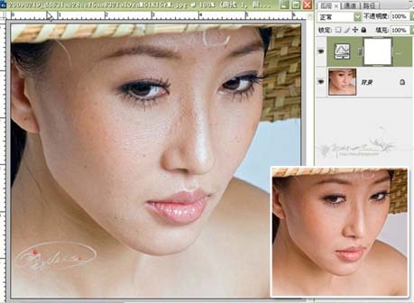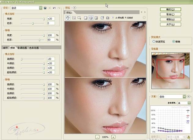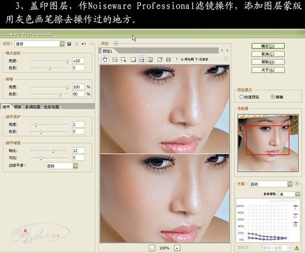 #p# 3、新建一个图层,盖印图层,做Noiseware滤镜操作,确定后加上图层蒙版用灰色画笔擦去操作过度的地方。