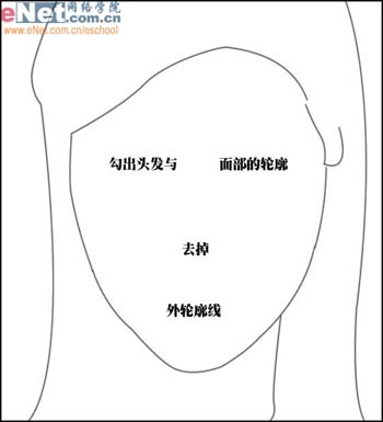 #p# 2、勾出头发与面部的轮廓,去诶懂啊外轮廓线。