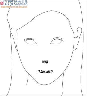 4、勾出眼睛轮廓线,注意是双眼皮。