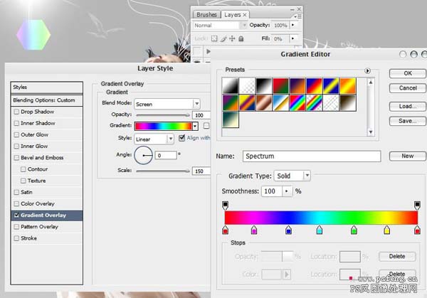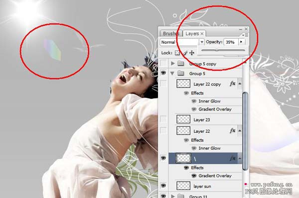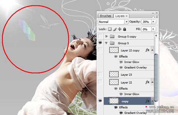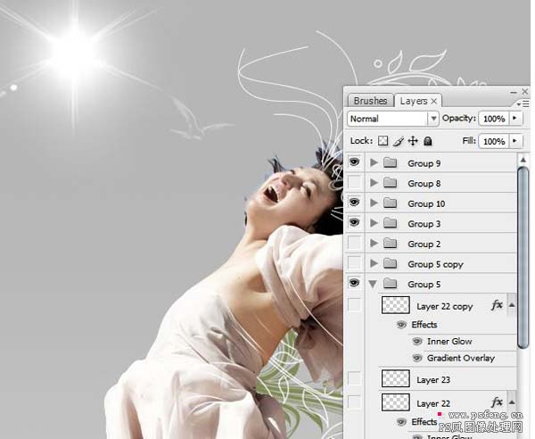 #p# 13、下面我们要做个光效,可以用星光笔刷刷出一个光照点,然后做一些光晕,这里我们没有用光照效果,是因为光照效果不能很好的控制我们想要的光晕形状。