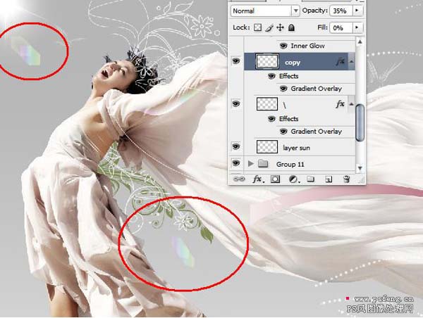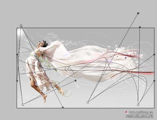 7、选取人物飘带部分,复制成一个新层,移到飘带尾部把飘带接长些,可以多复制几层,然后用蒙板处理其过渡,然后再做个盖印层。