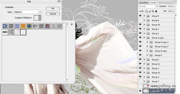然后在我们处理的图中新建一层填充图案.就会出现很多横线条布满整个画面,我们再用变形进行处理就可以得出成排的线条。