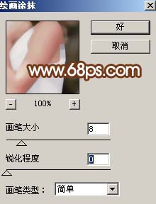 <图11> #p# 8、新建一个图层,盖印图层,执行:滤镜 > 艺术效果 > 绘画涂抹,参数设置如图12,确定后加上图层蒙版用黑色画笔把人物部分擦出来,效果如图13。
