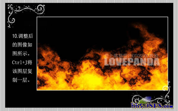9、选择矩形选框工具选择图像中自己满意的火焰部分,复制到新的图层然后自由变换拉大至画布大小。