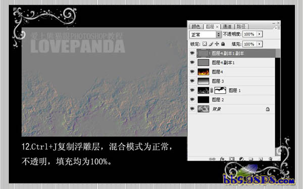 12、按Ctrl + J把浮雕层复制一层,图层混合模式改为“正常”,不透明度及填充均为100%。