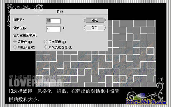13、选择菜单:滤镜 > 风格化 > 拼贴,参数设置如下图。