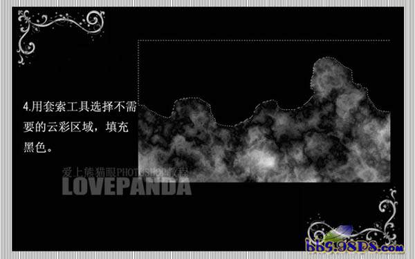 4、用套索工具选择不需要的云彩区域,填充黑色。