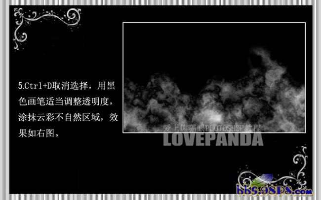 #p# 5、Ctrl + D取消选区,用黑色画笔适当调整透明度,涂抹云彩不自然区域,效果如下图右。
