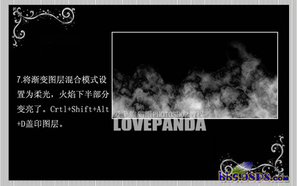 7、将渐变图层混合模式改为“柔光”,火焰下半部分变亮了,新建一个图层按Ctrl + Alt + Shift + E盖印图层。
