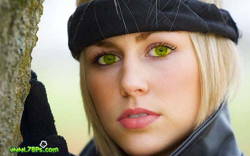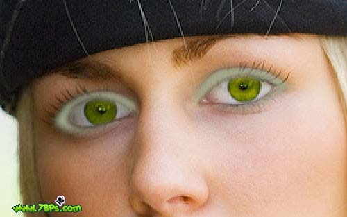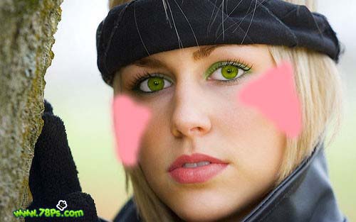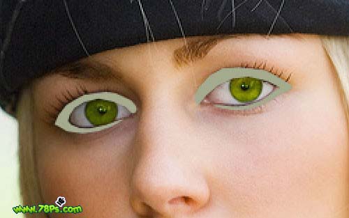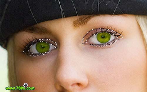 #p# 3、现在我们要改变眼睛的颜色。选择椭圆选框工具,按住SHIFT键在眼睛上画2个选区。
