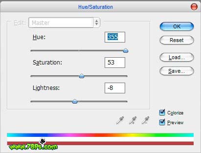 然后按CTRL+J把嘴唇复制为一个新图层,按CTRL+U调整色相饱和度,记得勾选右下角的着色。