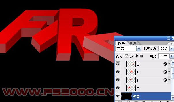 #p# 10、合并四个图层,同样的方法制作出另外的文字,完成立体字部分制作。