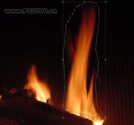5、打开下图所示火焰素材,使用套索工具勾选火焰。