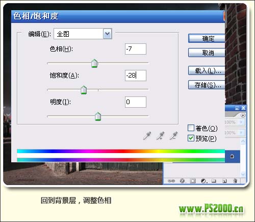 #p# 3、回到背景图层,按Ctrl + U调整色相/饱和度,参数设置如下图。