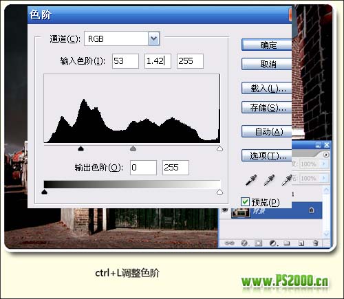 4、按Ctrl + L调整色阶,参数设置如下图。