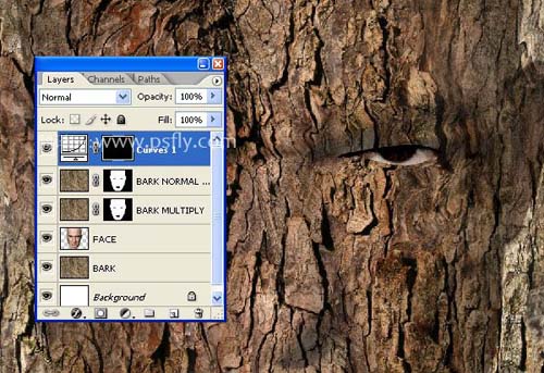 平面设计 > photoshop教程 > 合成特效 > photoshop 合成恐怖的树皮脸 2009-04-07 02:02:12 脚本之家 9、给最上面的两层树皮图层添加蒙版,擦去不需要的部分,如图所示: 10、图层--新建调整图层--曲线,压暗整体亮度,填充黑色,如图所示: 上一页 1 2 3 4 56 7 8 下一页 阅读全文