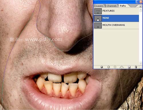 平面设计 > photoshop教程 > 合成特效 > photoshop 合成恐怖的树皮脸 2009-04-07 02:02:12 脚本之家 11、用钢笔工具画出,鼻子的纹理线,如图: 12、载入刚才的选区,用透明度16%的白色画笔把鼻子下方的阴影部分擦出。如果在其他网站看到本信息,说明本教程来源是网页教学WebjxCom网站,主要是为了防采集。 13、用同样的方法把嘴唇下方的阴影部分也擦出,表现出来。 上一页 1 2 3 4 5 67 8 下一页 阅读全文