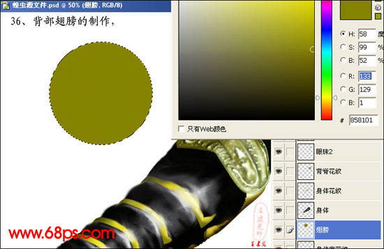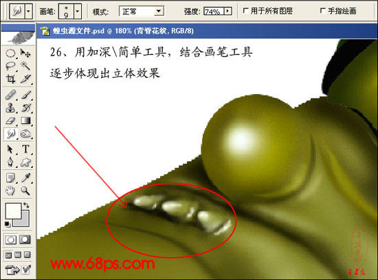 20、用加深/减淡工具结合画笔工具把背脊的立体感体现出来。