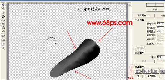 7、选择菜单:滤镜 > 液化,涂成下图所示效果。