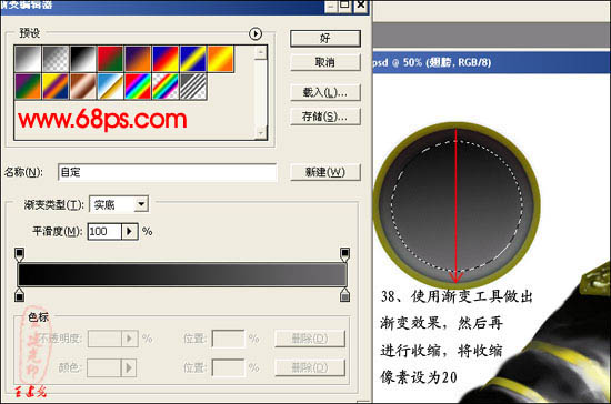 38、使用渐变工具做出渐变效果,然后再进行收缩,将收缩像素设为20。