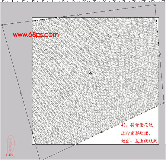 43、将背景花纹进行变形处理,做出一点透视效果。