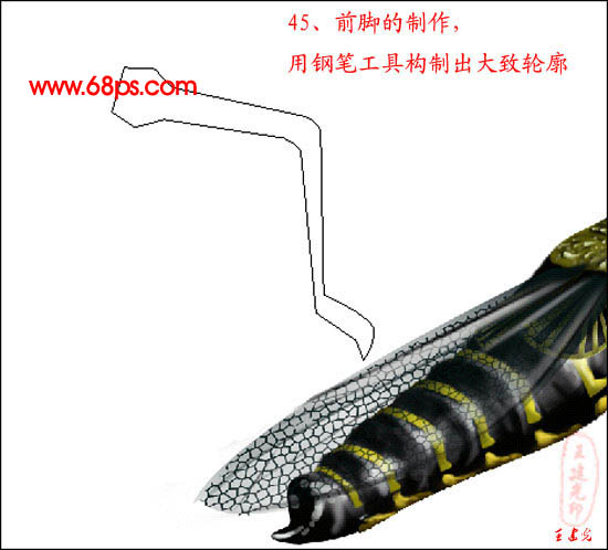 #p# 45、前脚的制作,用钢笔工具构制出大致轮廓。