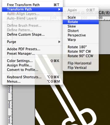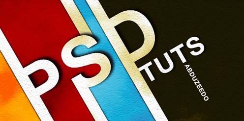 #p# 14、使用横排文字工具(快捷键为T),输入文字“TUTS”。将之旋转到和其他文字同样的角度,和那几条白色竖线垂直。当然,你可以对这些文字应用渲染的滤镜效果。