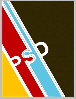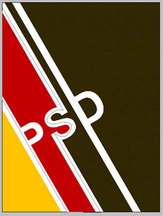 5、使用钢笔工具(快捷键为P)在字母P、S、D上画出一些形状来,并将这些形状放到“White Lines”群组的下方。再对这些形装添色,第一个形状添充黄色,第二个形状添充红色,第三个形状添充蓝色。之后,将这些图层编组,命名为“Colors”。