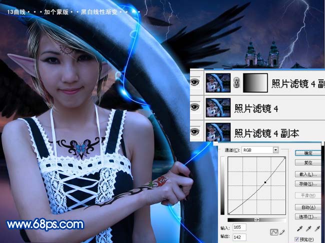 13、新建一个图层盖印图层,按Ctrl + M调整曲线,稍微调暗一点,然后加上图层蒙版拉上黑白渐变,如下图。完成最终效果。