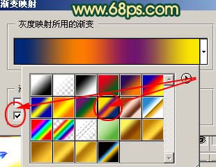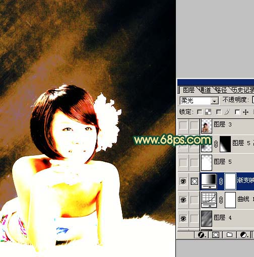 <图8> #p# 5、创建渐变映射调整图层,选择图9所示的渐变勾选反相选项。这是PS自带的渐变色,如果你找不到可以选择恢复默认即可。确定后把图层混合模式改为“柔光”,效果如图10。