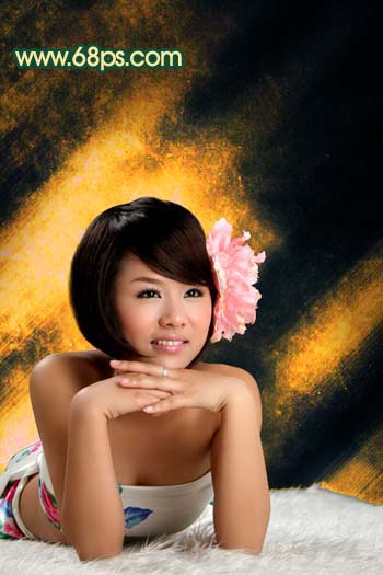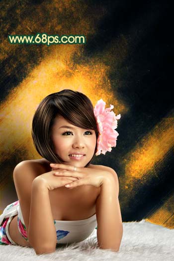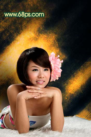 原图素材由于背景部分较暗,看不到里面的纹理,通过调白就可以显示出来。处理背景的时候就是利用这些纹理,适当的调亮,然后调成自己喜爱的颜色。制作方法非常简单。