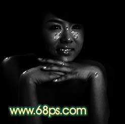 <图16> #p# 10、点通道面板,把蓝色通道复制一层,按Ctrl + M调整曲线,稍微调暗一点,然后用黑色画笔把肤色以外部分涂黑,效果如图17,然后按Ctrl点蓝色副本通道调出选区如图18。