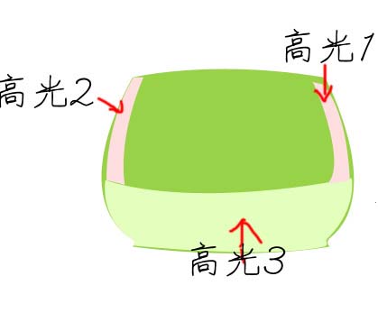 4、建立选区填充绿色,我标下高光区域示意图。