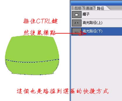 3、钢笔工具在次出动,新建路径画出罐子的高光区域。