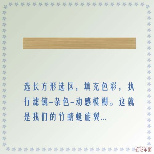 #p# 2、新建一个图层用矩形选框工具拉一个长方形选区填充大致木质颜色。然后执行:滤镜 > 杂色 > 添加杂色,数值自己把握。确定后再执行:滤镜 > 模糊 > 动感模糊,数值稍微大一点,效果如下图。