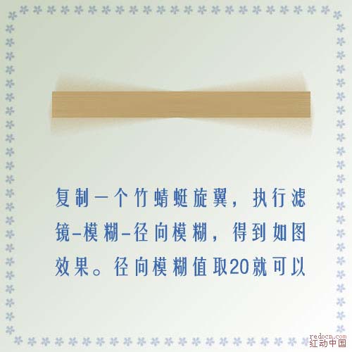 3、复制一个竹蜻蜓旋翼,执行:滤镜 > 模糊 > 径向模糊,模糊方法选择旋转,数值为20,效果如下图。
