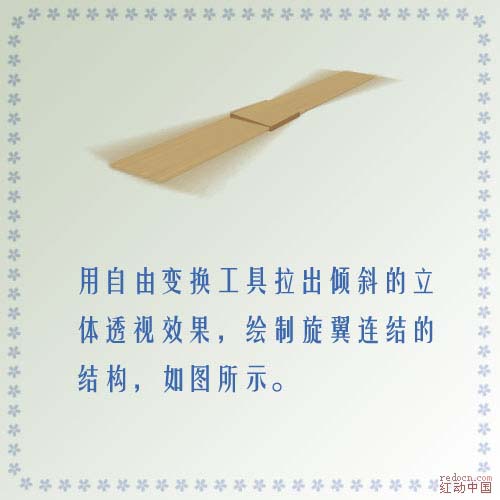 4、用自由变换工具拉出斜面的立体透视效果,绘制旋翼连接的结构,效果如下图。
