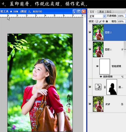 4、新建一个图层,盖印图层,适当的锐化处理,完成最终效果。