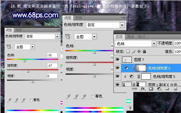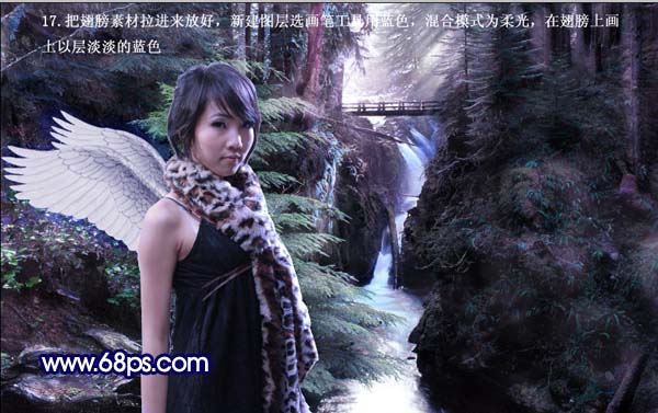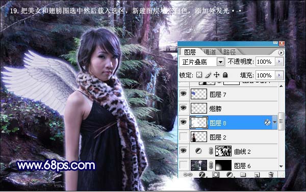 平面设计 > photoshop教程 > 合成特效 > photoshop 合成树林里梦幻的紫色天使 2009-06-11 03:11:30 脚本之家 16、把美女和美女副本盖印一张(Ctrl + Alt + E),创建色相/饱和度调整图层,参数设置如下图。 17、打开下图所示的翅膀素材,把翅膀抠出来,复制进来放好位置,新建一个图层,图层混合模式改为“柔光”,然后用蓝色画笔把翅膀涂成淡淡蓝色。 18、把美女和翅膀图选中然后载入选区,新建图层填充白色,添加外发光,颜色选择淡蓝色。 上一页 1 2 3 4 5 6 78 下一页 阅读全文
