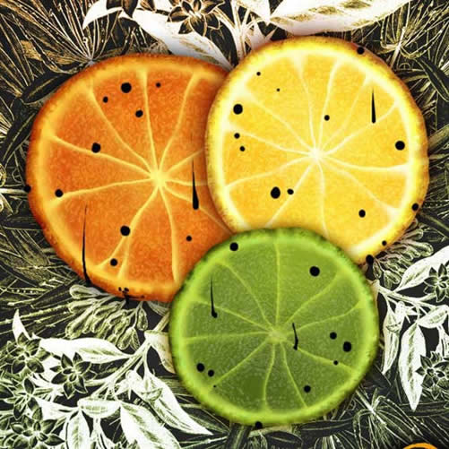 现在,使用上面的一系列方法,您可以创造出不同颜色形状的橙子。这里我做了一个较亮的柠檬橙和一个绿色的酸橙。