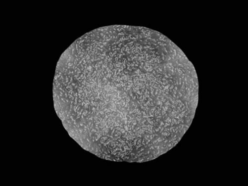 先来创造基本形状,以黑色为背景,创建一个新层,取名“橙子”。在上面画出一个不规则边缘、粗糙的圆来,填为白色,您可以用椭圆选框工具,或是套索工具来完成它。这里不规则的外形让它显得更自然些。