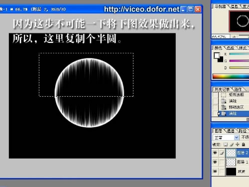 3.选择矩形选框工具,框选圆的上半部分,按Ctrl C复制,不要取消选区按Ctrl Shift I反选,按Delete删除,确定后再按Ctrl V粘贴,然后把粘贴后的图形执行菜单:编辑 > 变换 > 垂直翻转,然后把两个半圆衔接在一起并合并这两个图层。下国如下图