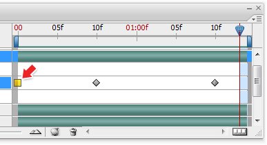 注意此时原先设定的帧已位于时间区域之外了,但仍然在发挥作用,控制着动画的参数改变。即使再将持续时间改为更短,以至于在动画调板已看不见时,也是如此。所以在时间轴方式下定义的关键帧,是不会因为持续时间变短而消失的。以后只要增加持续时间,它们还会出现。这是一个很重要的特性。