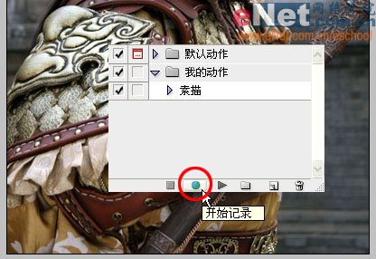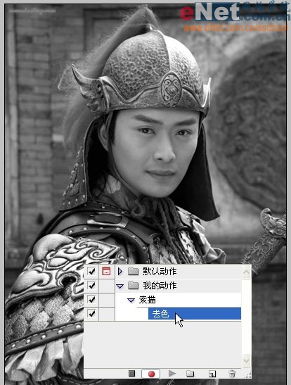 12、下面我们就用这个录好的动作来给另一张图片快速地做素描效果。